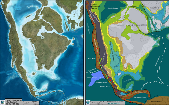 The second site that will be of interest is the Library of Paleogeography run by Dr. Ron Blakely. These maps cover approximately the same time frame as those provided by Dr. Scotese and are not animated. However, Dr. Blakely provides maps in different projections and provides regional coverage beyond that of global maps. So if you are specifically interested in paleogeographic maps of North America and Europe, this is an excellent resource.